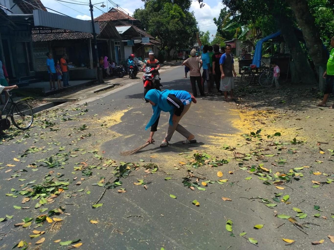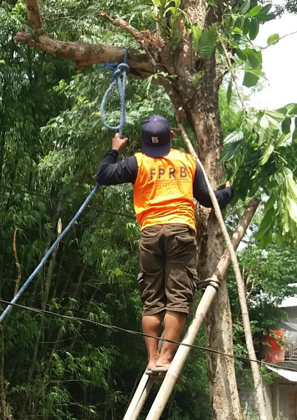 Segoroyoso – (11/02/2019) Musim penghujan yang masih berlangsung menyebabkan warga masyarakat harus lebih hati-hati dan waspada. Karena selain ancaman banjir, adanya pohon tumbang juga menjadi ancaman dikala musim penghujan. Akan lebih fatal lagi akibatnya, jika pohon yang tumbang tersebut mengenai jaringan listrik karena berpotensi menyebabkan kebakaran. Menyikapi hal tersebut, FPRB Desa Segoroyoso beserta masyarakat di Pedukuhan Kloron dan Srumbung, Kasie Pemerintahan Desa Segoroyoso, SAR Sultan Agung, dan PLN Bantul dipimpin langsung oleh Lurah Desa Segoroyoso, Bp. Miyadiana secara sigap pada hari Minggu, 10 Februari 2019 melakukan penebangan pohon serta pemangkasan ranting-ranting pohon yang mengenai kabel jaringan listrik. Kegiatan dilaksanakan di sejumlah titik di wilayah Desa Segoroyoso, yaitu Pedukuhan Kloron dan Srumbung.