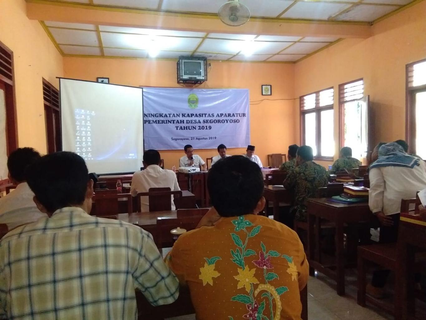 Segoroyoso (22/08/2019) – Peningkatan Kapasitas Aparatur Pemerintah Desa Segoroyoso pada hari Rabu, 21 Agustus 2019 jam 13.00 WIB diisi dengan Pembahasan Pergub No. 34 tentang Pemanfaatan Tanah Desa. Hadir sebagai nara sumber dalam kesempatan tersebut adalah dari Dinas Pertanahan dan Tata Ruang Kabupaten Bantul, Budiantoro. Acara yang berlangsung hingga pukul 16.00 WIB tersebut dihadiri oleh Lurah beserta pamong desa termasuk carik, kasie, kaur, dukuh, dan staf. Juga hadir Staf Tata Pemerintahan Kecamatan Pleret, Babinsa, serta Bhabinkamtibmas.