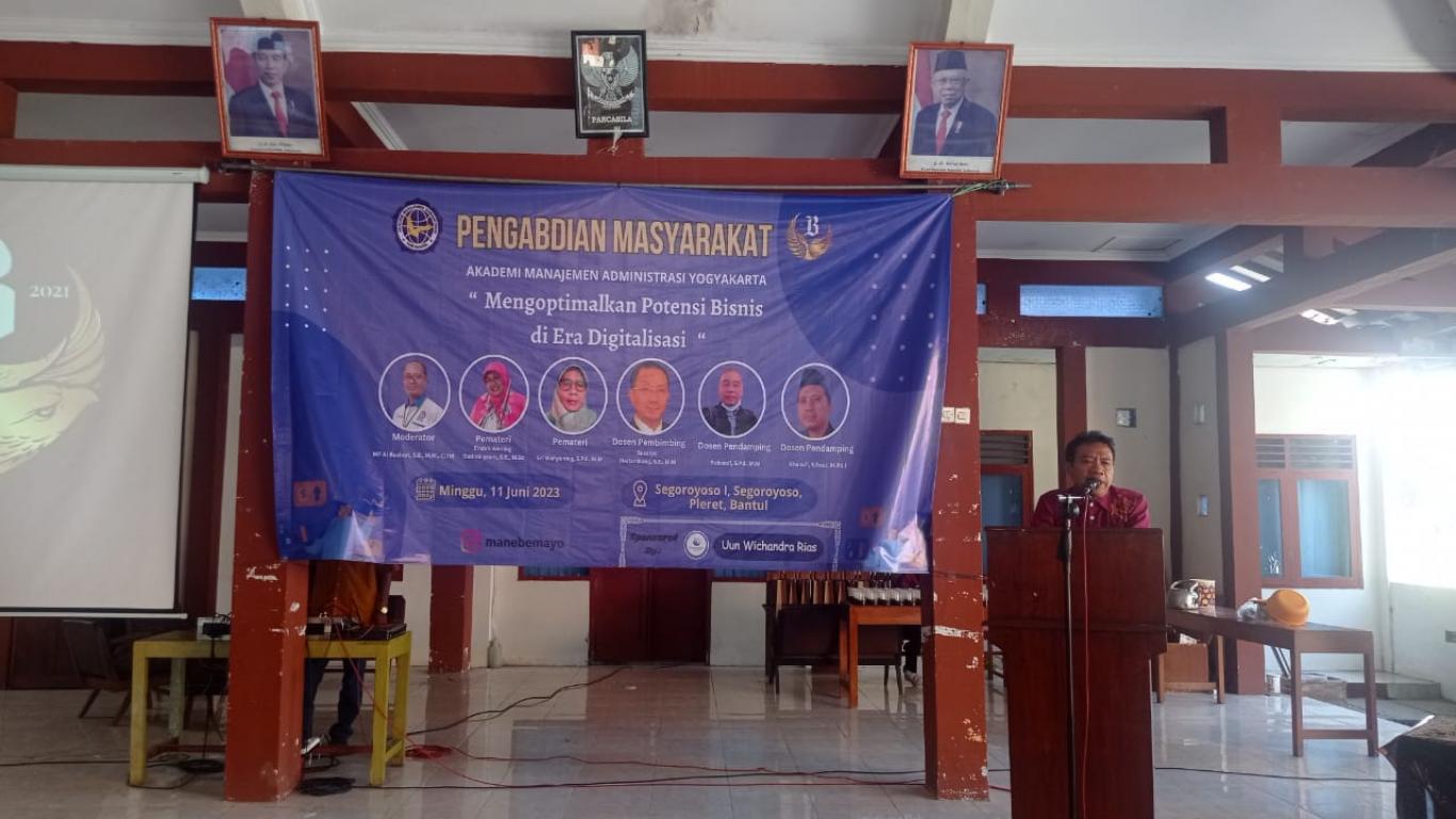 Segoroyoso (11/06) – Program Pengabdian Masyarakat yang dilaksanakan oleh Akademi Manajemen Administrasi AMA Yogyakarta pada Minggu (11/06) bertempat di Pendopo Kalurahan Segoroyoso mengambil tema Mengoptimalkan Potensi Bisnis di Era Digitalisasi.