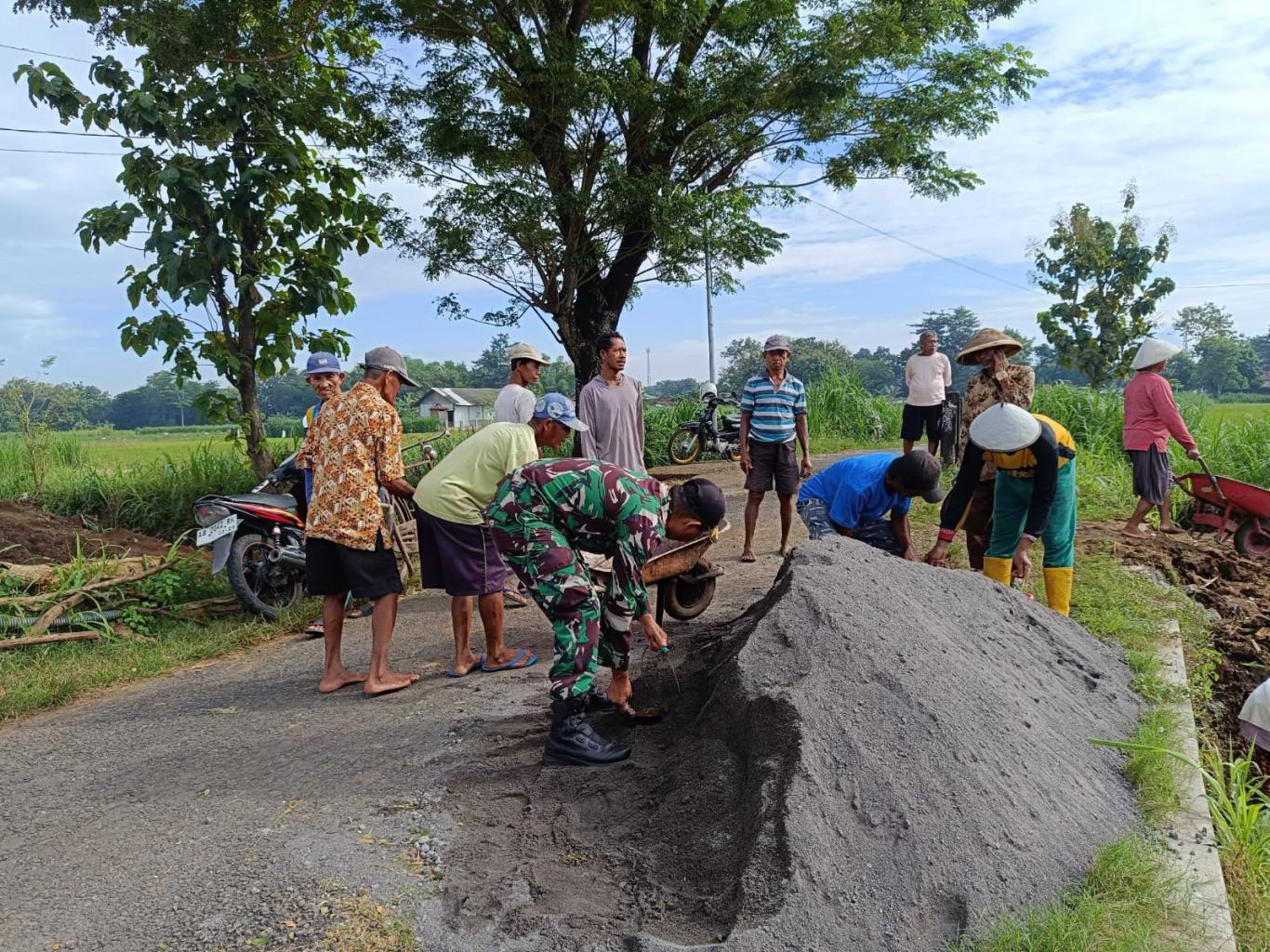 Selain Ulu-Ulu Kalurahan Segoroyoso, Babinsa Segoroyoso juga turut hadir dan aktif membantu jalannya kegiatan kerja bakti. Kehadiran Babinsa ini semakin memperkuat sinergi antara pemerintah kalurahan, kelompok tani, dan unsur keamanan wilayah dalam mendukung pembangunan di tingkat masyarakat.