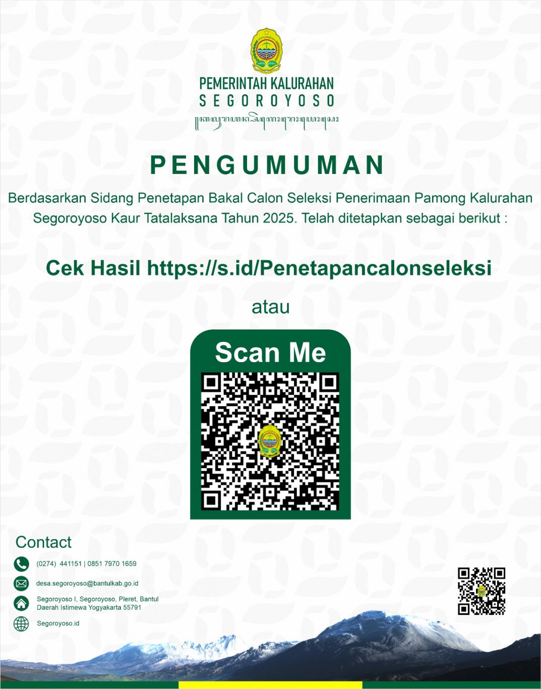 Penetapan Hasil Seleksi Calon Pamong Kalurahan Jabatan kaur Tata Laksana