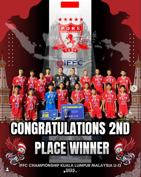Segoroyoso. PORS U13 meraih juara 2 pada Laga IFFC Championship di Kuala Lumpur Malaysia yang dilaksanakan pada Desember 2025.